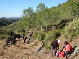 Avui una colla de 22 ganàpies ens proposem conèixer una mica millor el Parc Natural del Garraf. Sortim d’Olivella en direcció a Can Muntaner, seguim i de seguida veiem el Barret del Rector (unes curioses pedres). De camí a la Font del Rector trobem els cavalls de la transhumància, uns cavalls que ocupen un espai del camí de la tradicional transhumància, que es continua fent servir avui en dia. Continuem cap el Castell Vell d’Olivella. De baixada, caminem per un camí ple de càrritx, fins a trobar el GR 92.3 que ens portarà fins al mas de Santa Susanna. Tornem cap a Olivella passant per la Cova de Can Muntaner. Un dia preciós per voltar pel Garraf. Ho hem gaudit molt. Val a dir que el camí està ben senyalitzat i amb molts cartells indicadors que ens expliquen la història dels llocs que anem trobant. Moltes gràcies Salvador per la teva bona guia!