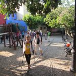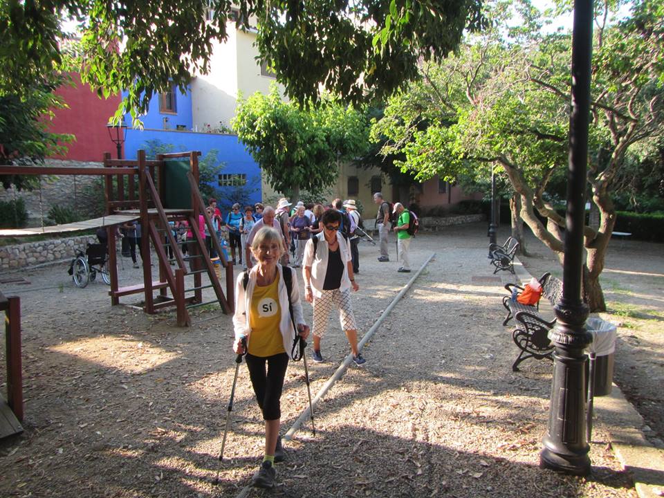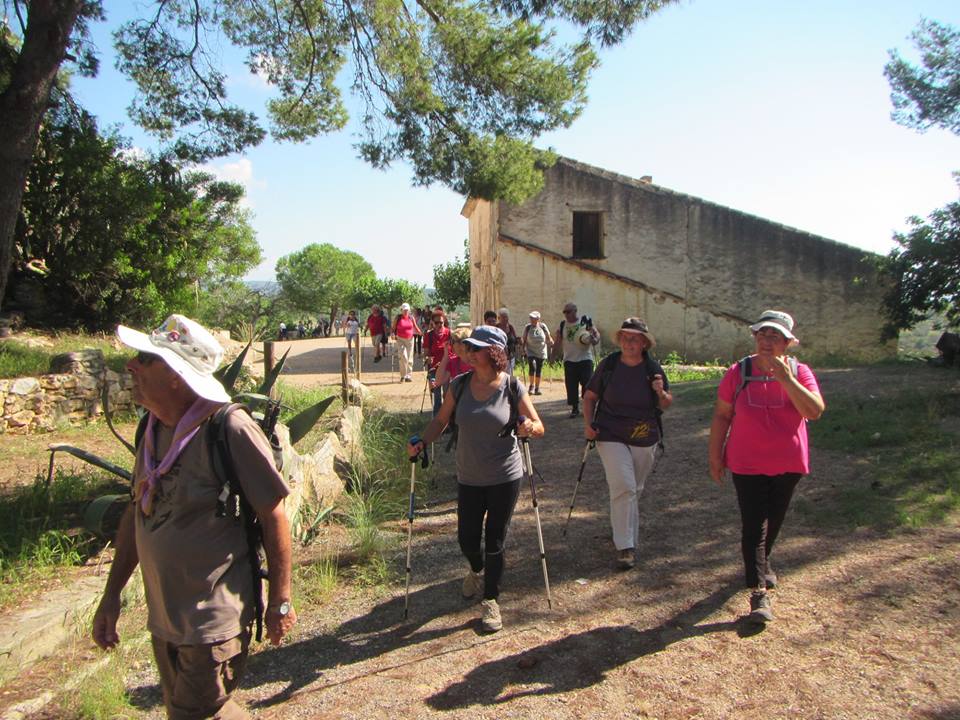 Vam començar la ruta fent un recorregut circular que ens va portar per camins de vegetació típica mediterrània i conreus d’avellaners. Un tram d’aquest camí també passa per una antiga línia férria, ara completament abandonada i envaïda per la vegetació. Seguim en direcció a la Pobla de Montornés i pugem a l’ermita de la Mare de Deu de Montornés ( 1785), on cada any s’hi fa un Pessebre vivent.
