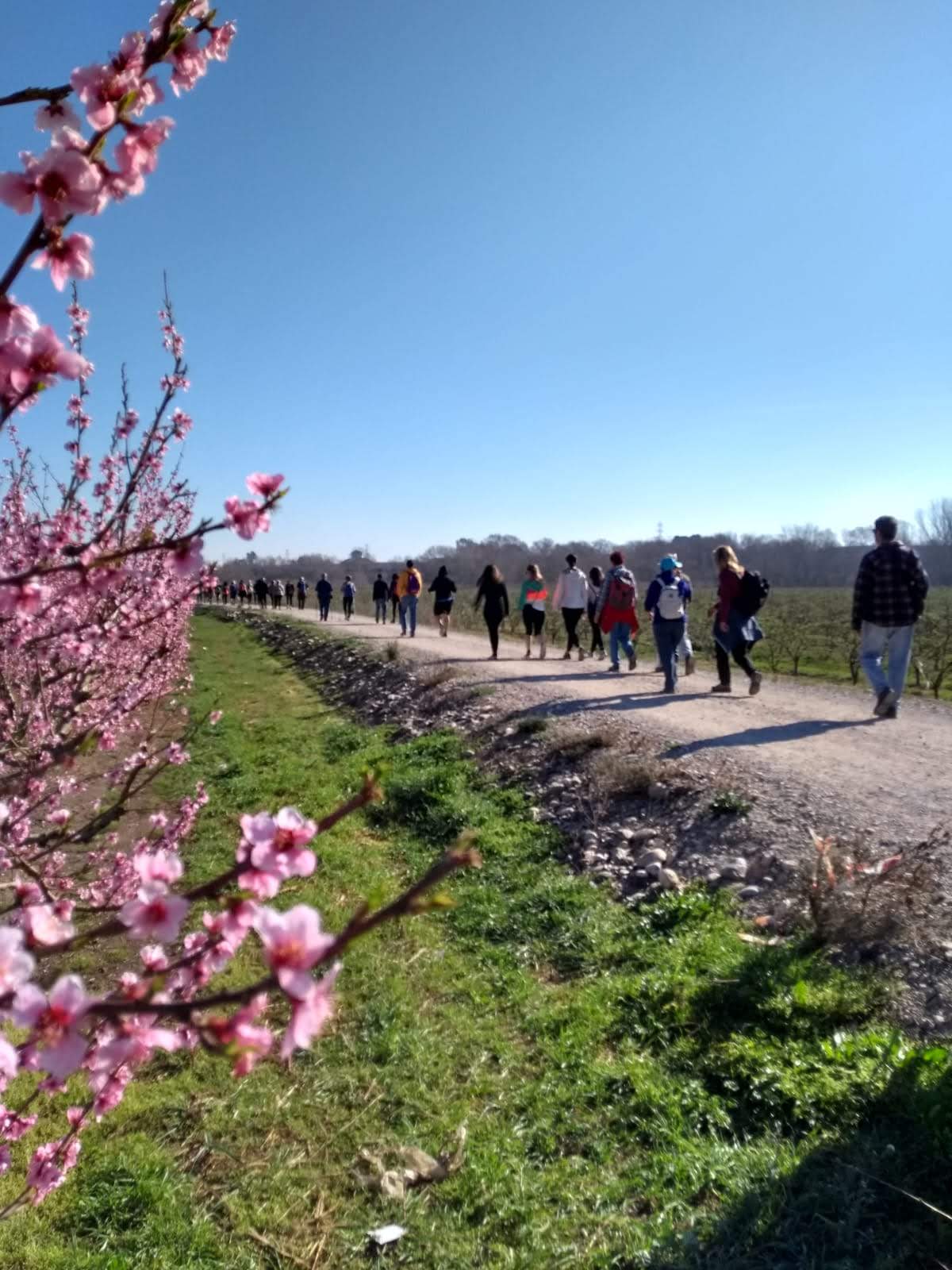 Aquest diumenge 10 de març, 35 ganàpies ens hem afegit a la Caminada Popular d’Aitona. Ha estat una experiència molt interessant. Hem compartit els camins amb unes sis-centes persones, però no ha estat gens agobiant perquè cadascú anava al seu ritme. El paisatge ha estat espectacular. Caminar entremig d’arbres fruiters com presseguers, nectarines, paraguais o pereres és endinsar-se en un món de flors i colors que permeten contemplar i agrair la bellesa de la natura. L’organització ha estat perfecte! Hi havia tres rutes de 9, 15 i 20 km i tothom ha pogut triar la més adequada. Moltes gràcies als participants i a l’ajuntament d’Aitona.