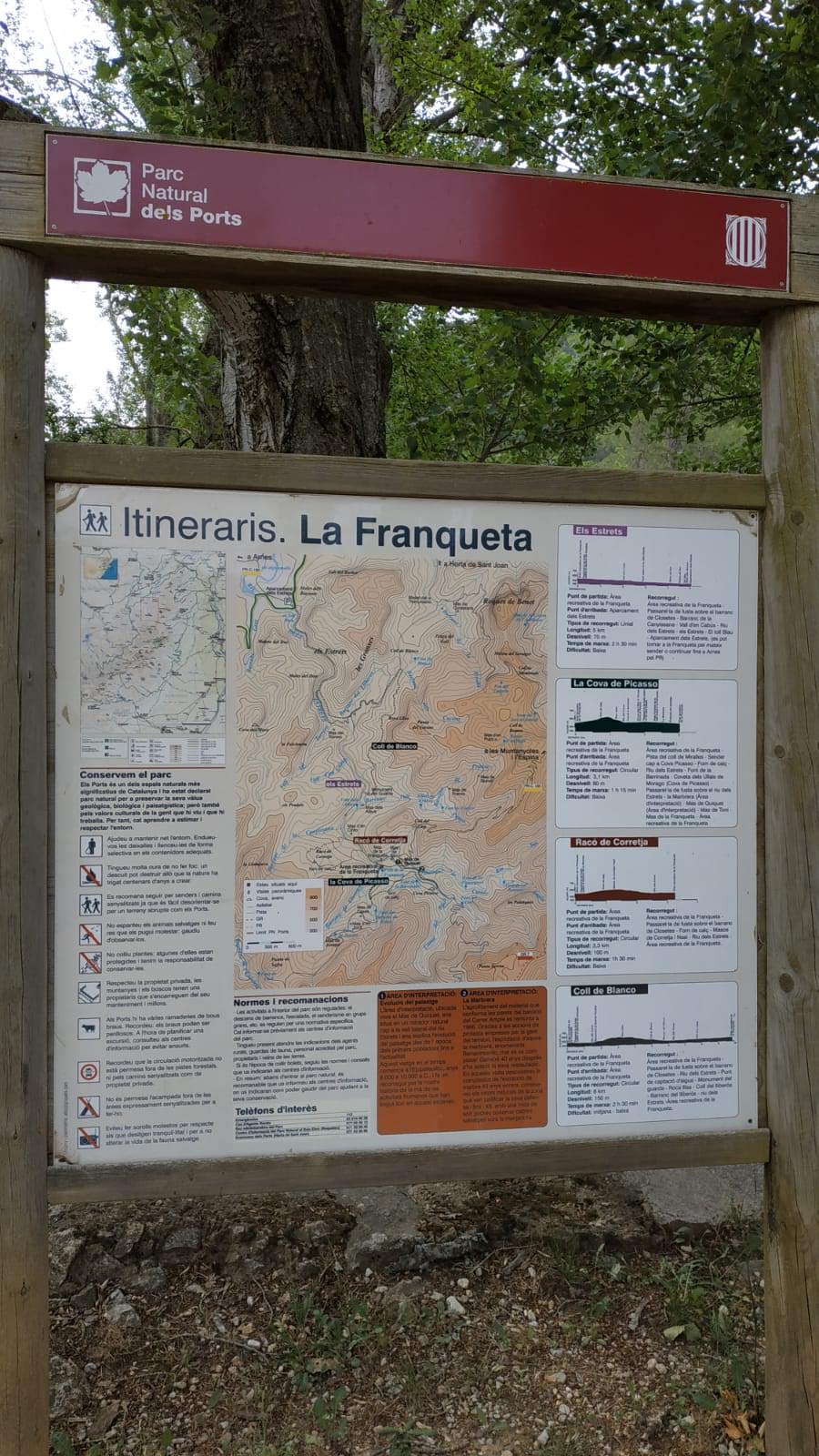 Arribem al poble de L’Horta de Sant Joan i agafem la carretera que ens porta ben a prop de les impressionants roques del Benet. Però les deixem enrere perquè avui no és aquest el nostre objectiu. Continuem fins l’àrea recreativa de la Franqueta on començarà el camí d’avui.