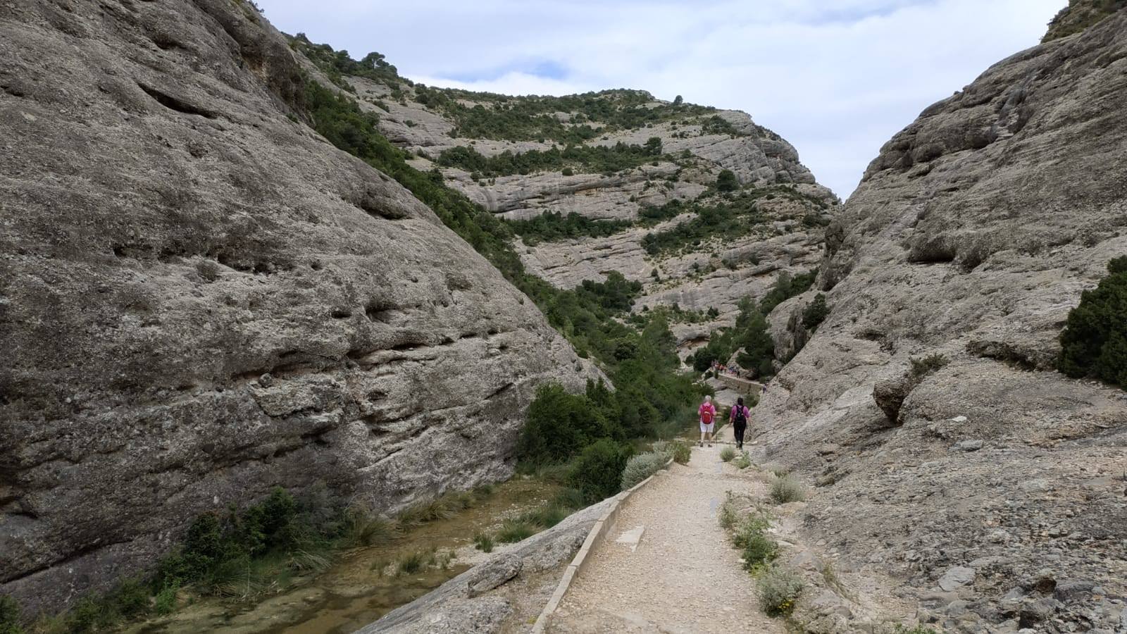 Abans d’entrar pròpiament als “Estrets” seguim durant uns tres kilòmetres un caminet molt ombrívol i agradable. Més endavant el camí s’obre i podem veure les espectaculars parets de pedra que ja no ens deixaran en tot el recorregut.
