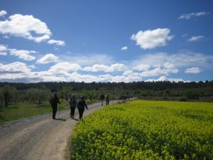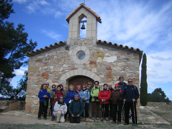 El dia d’avui ens ha portat a conèixer un bonic racó de la nostra estimada terra: el poblet del Soleràs, a la comarca de les Garrigues. Hem anat caminant per una pista pel mig de sembrats, ametllers i oliveres, fins l’ermita de la Mare de Déu de les Garrigues. És una ermita ben curiosa perquè està feta de l’any 2007. Diuen que van aplanar la zona i s’hi van trobar moltes pedres. Es van preguntar què en podien fer i a un home se li va acudir la idea de fer una ermita. Ràpidament li van contestar que, ja que ho havia proposat, es podia posar a la feina i així va ser. En poc temps va tenir aquesta bonica ermita enlairada. Vam tornar pel mateix camí i vam anar a dinar a una zona amb una ermita i dues capelles dedicades a la mares de Déu de Fàtima i Lourdes. Es veu que són un poble força religiós. El dia va ser molt agradable, però amb una mica de vent. Totalment pla i uns deu quilòmetres de camí.