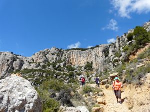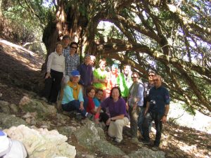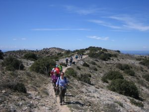Avui hem fet una ruta que surt de la Morera del Montsant i puja pel grau de la Grallera. Després va seguint per la carena de la serra Major, passant pel piló dels Senyalets i el pi del Cugat. Després baixa cap el començament del barranc de la Taverna (ja al terme de Margalef) on hi trobem una balma i un magnífic exemplar de teix. Es tracta d’un imponent arbre mil·lenari. Tornem pel mateix camí. Són uns deu quilòmetres que fem en unes quatre hores per les pujades i baixades pròpies d’aquesta serra. El dia ha estat preciós i la colla no massa gran, però molt animada i ben avinguda.