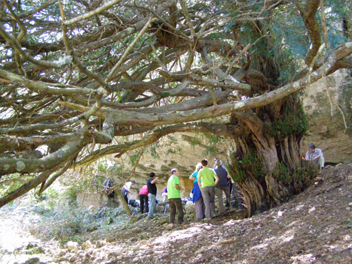 Avui hem fet una ruta que surt de la Morera del Montsant i puja pel grau de la Grallera. Després va seguint per la carena de la serra Major, passant pel piló dels Senyalets i el pi del Cugat. Després baixa cap el començament del barranc de la Taverna (ja al terme de Margalef) on hi trobem una balma i un magnífic exemplar de teix. Es tracta d’un imponent arbre mil·lenari. Tornem pel mateix camí. Són uns deu quilòmetres que fem en unes quatre hores per les pujades i baixades pròpies d’aquesta serra. El dia ha estat preciós i la colla no massa gran, però molt animada i ben avinguda.