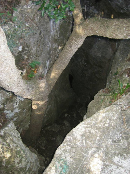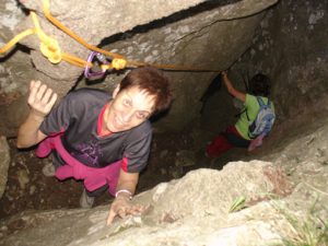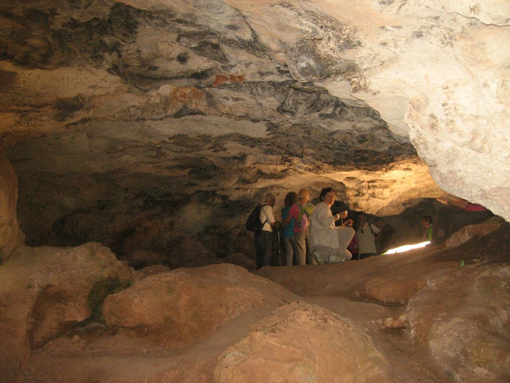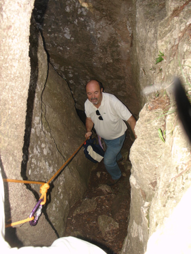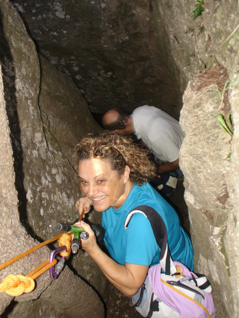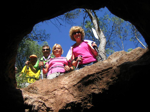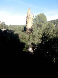 Anem en direcció a la Serra del Bolet fins la cinglera on baixem pel Pas del Lladre o de la Guineu, un pas estret i espectacular que ens dur a l’esvelta agulla de Valldellós de 18m d’alçada. Allà ens retrobem amb l’altre grup que ha anat pel torrent de Valldellós. Esmorzem plegats i continuem el camí junts, per anar cap a la Cova del Bolet.