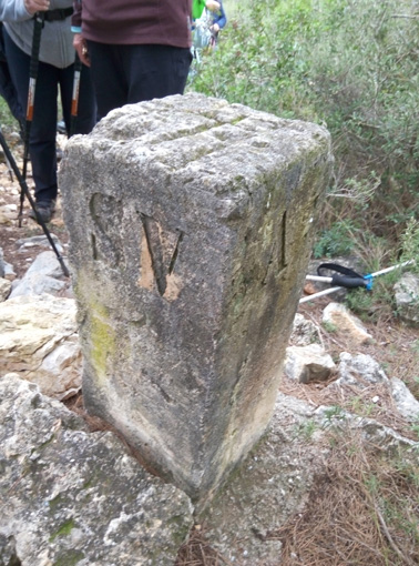 El primer que hem visitat és la cova de la Merla que avui estava força eixuta i era fàcil d’entrar-hi. S’hi trobeen formacions rocoses ben curioses. Després hem passat pels quatre termes on hi ha una fita amb les incials dels quatre termes que s’hi troben: Albinyana, Bonastre, Roda i Sant Vicenç de Calders (antic terme que avui forma part del Vendrell).