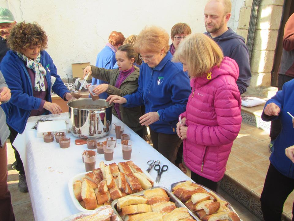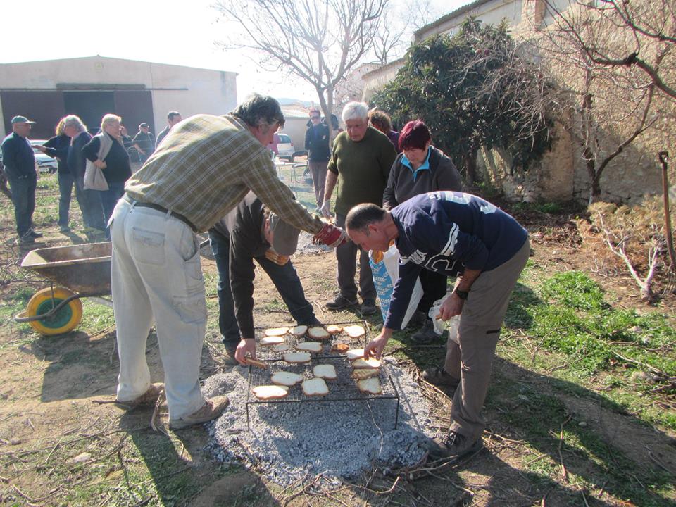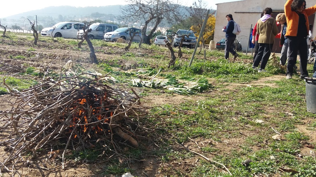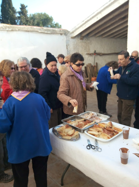 Com cada any, la calçotada a Cal Mata és una festa. Primer esmorzem coca i xocolata, gentilesa de la Pilar i de l’Isidre, per celebrar el naixement del seu net Magí. Després, ajudem als nostres cuiners a preparar els calçots. Seguidament sortim a caminar una estona. Sortim des de l’ermita de St Antoni d’Albinyana en direcció a la cova de Vallmajor passant per la Masia Escansa. El dia és magnífic i el passeig per la serra de Bonastre és immillorable. De tornada a Cal Mata acabem d’ajudar la intendència que ja ens té a punt el dinar. Bona calçotada per tothom !!.