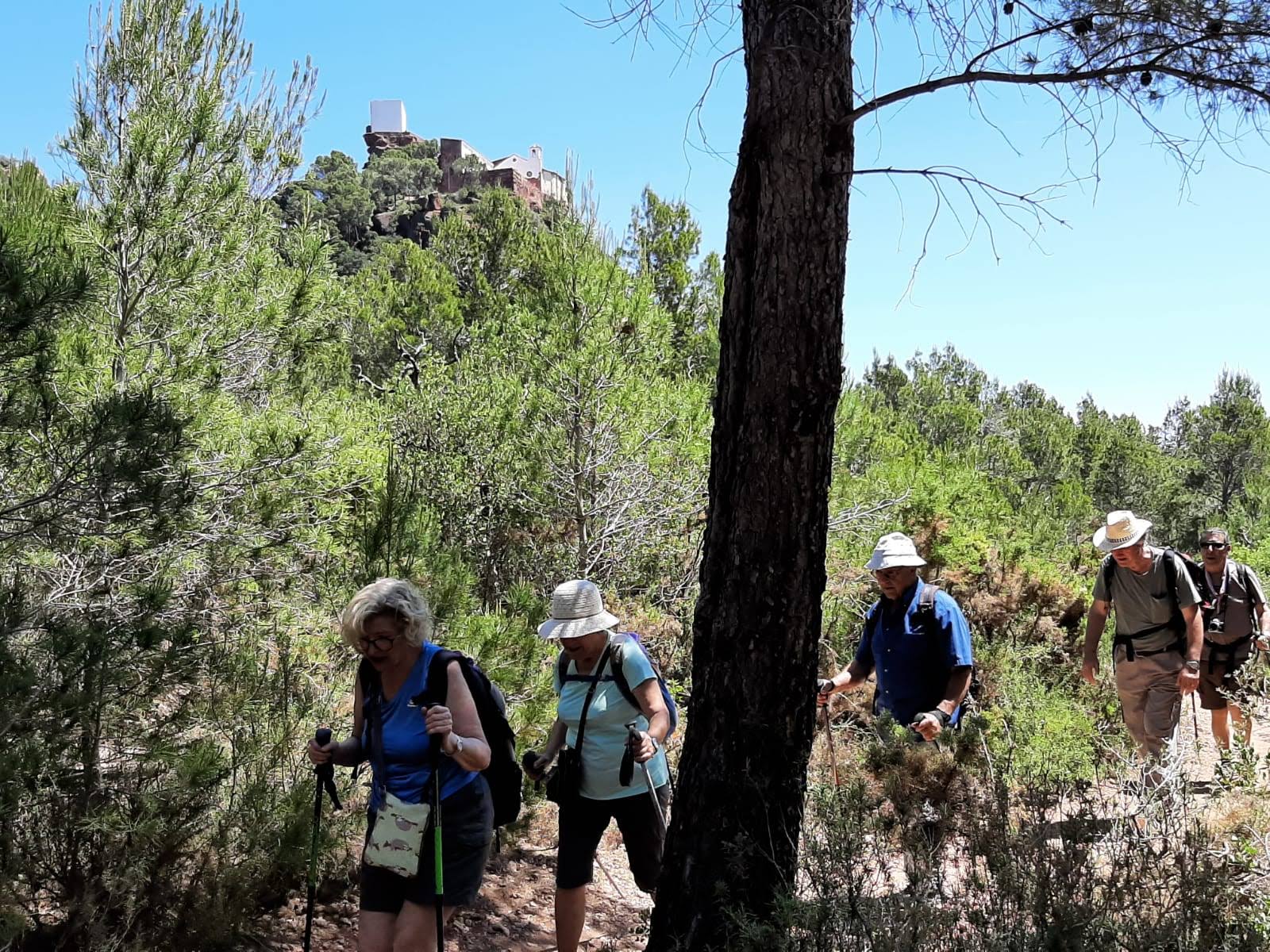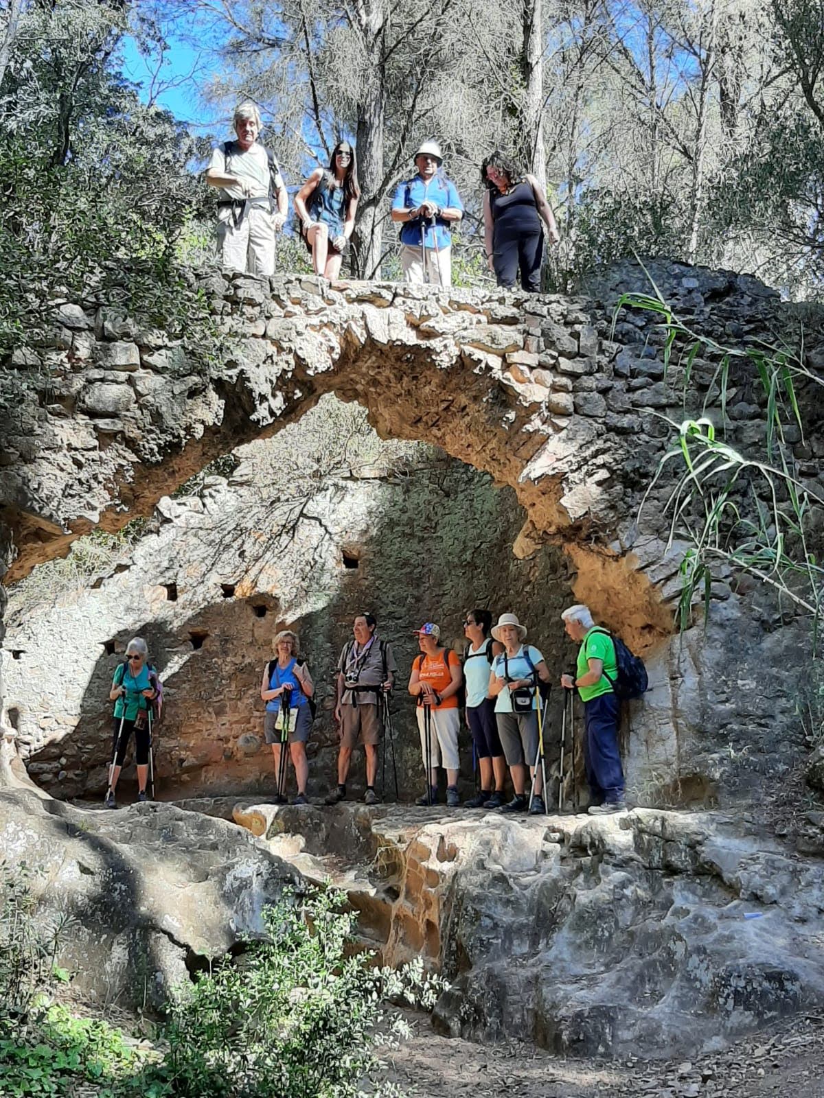 Després hem remuntat pel barranc de l’Horta fent una mena de barranquisme en sec i gaudint del seu magnífic entorn. Aviat hem trobat el camí que ens puja a l’Ermita de la Mare de Déu de la Roca. És un camí dret de pedra vermella i que passa entre mig de xiprers i noves plantacions d’oliveres. Hem gaudit d’un temps lliure que cadascú ha aprofitat com ha volgut. Alguns han anat fins la cova Foradada, uns altres han fet una cerveseta per recuperar forces,…i tots hem admirat un paisatge molt extens del Camp de Tarragona des del cap de Salou fins a Vandellós.