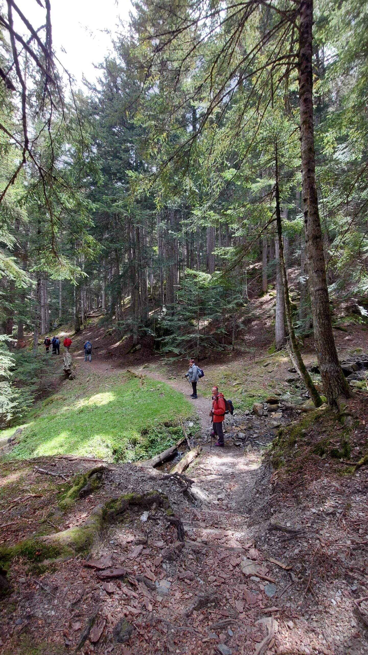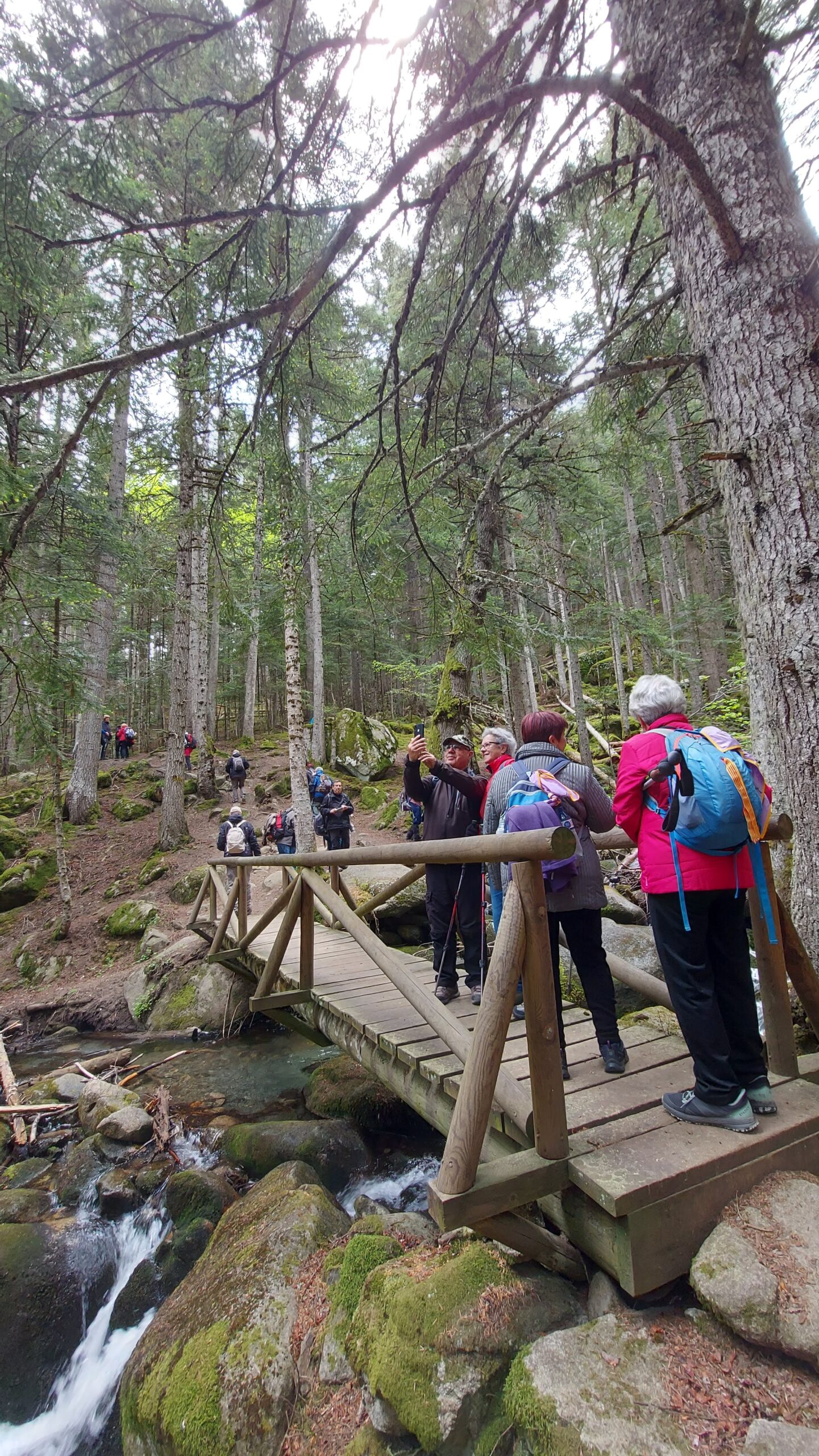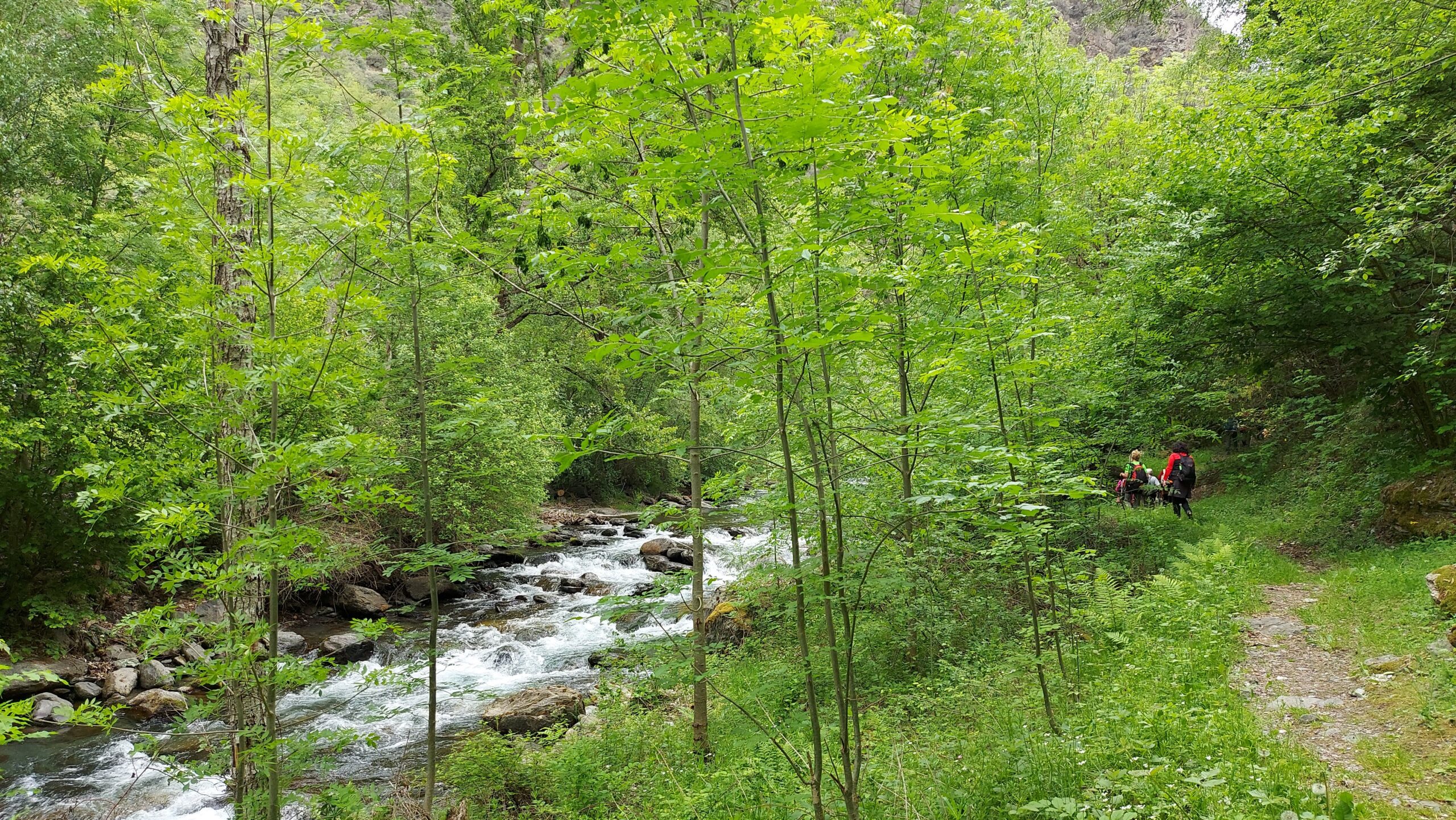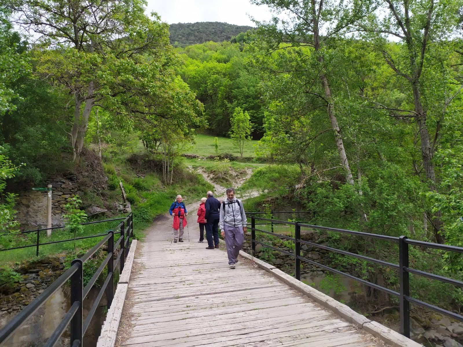 El primer dia vam arribar a la Bonaigua de Baix i, passant pel bosc del Gerdar, aviat ens vam endinsar en l’avetosa de València, un bosc magnífic que és Reserva de la Natura. El camí són uns 11 quilòmetres amb un desnivell de 125 m positius i uns 350 m negatius. Travessa boscos d’avets, rius, ponts,…i ara a la primavera, s’ofereix en el seu màxim esplendor. Arriba a València d’Àneu i està força ben senyalitzat. El temps ens va respectar i a la tarda (quan ja érem a l’alberg) va ploure una mica. Ho vam aprofitar per jugar al dòmino i al Rummikub.