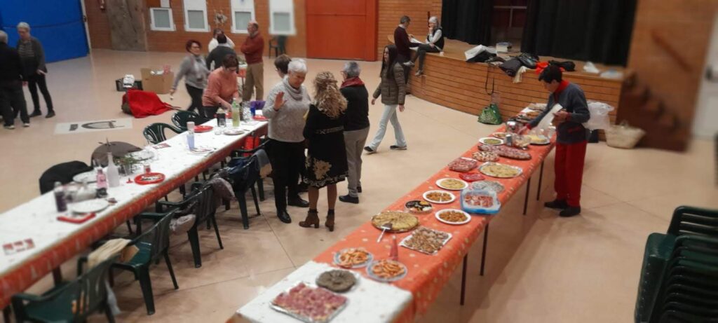 El sopar consisteix en un buffet on cadascú col.labora amb el menjar que més li agrada i que sempre llueix molt i és boníssim!!