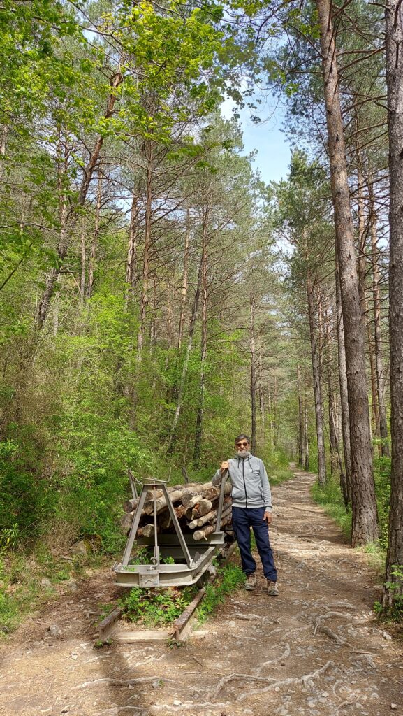 Aquesta via va ser construïda el 1914 per Tomàs Nicolau i es va fer servir, fins a mitjans dels anys 30, per portar la fusta des de Gisclareny fins a Guardiola de Berguedà. Després va quedar en desús i el 2009 es va començar la seva restauració amb finalitats turístiques. Després de la ruta dinem a l’àrea de pícnic de la vora del riu i després anem a fer un tomb pel poble.