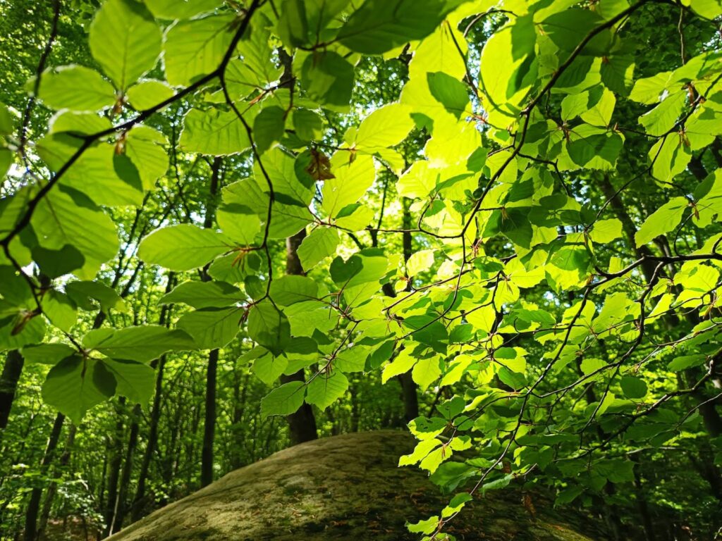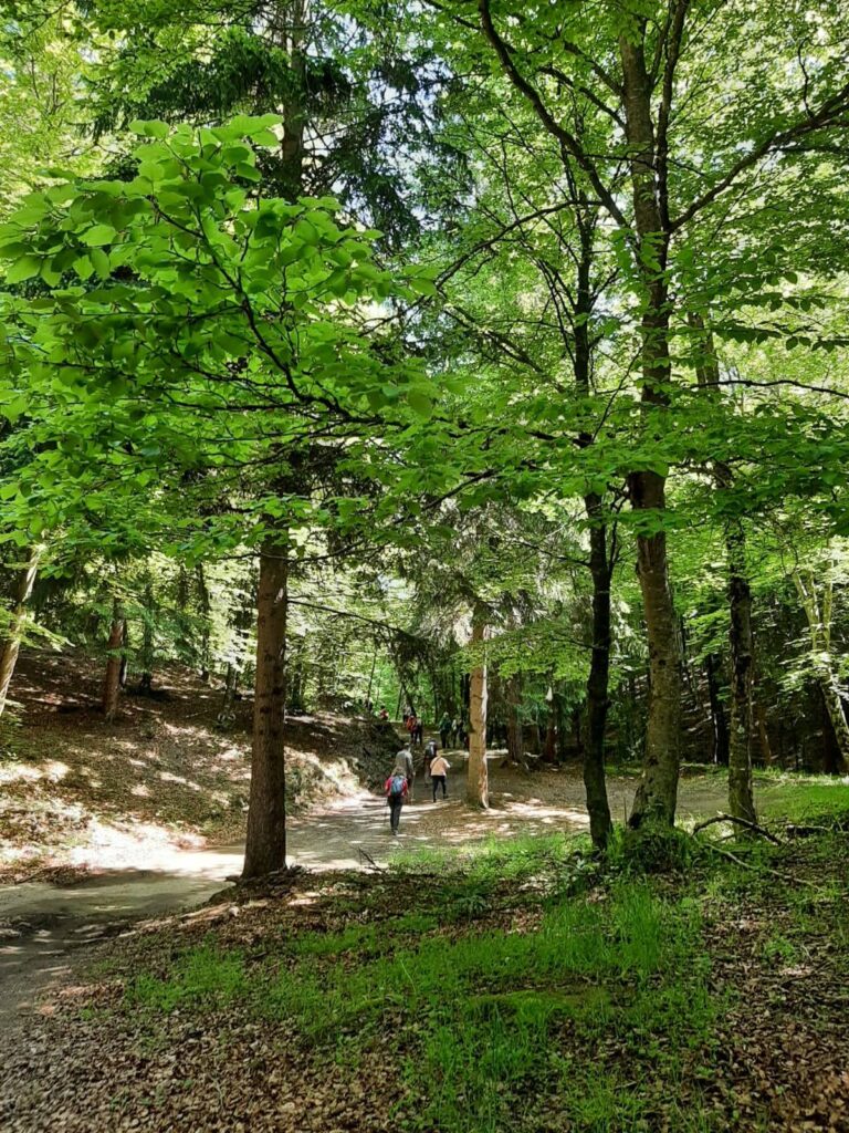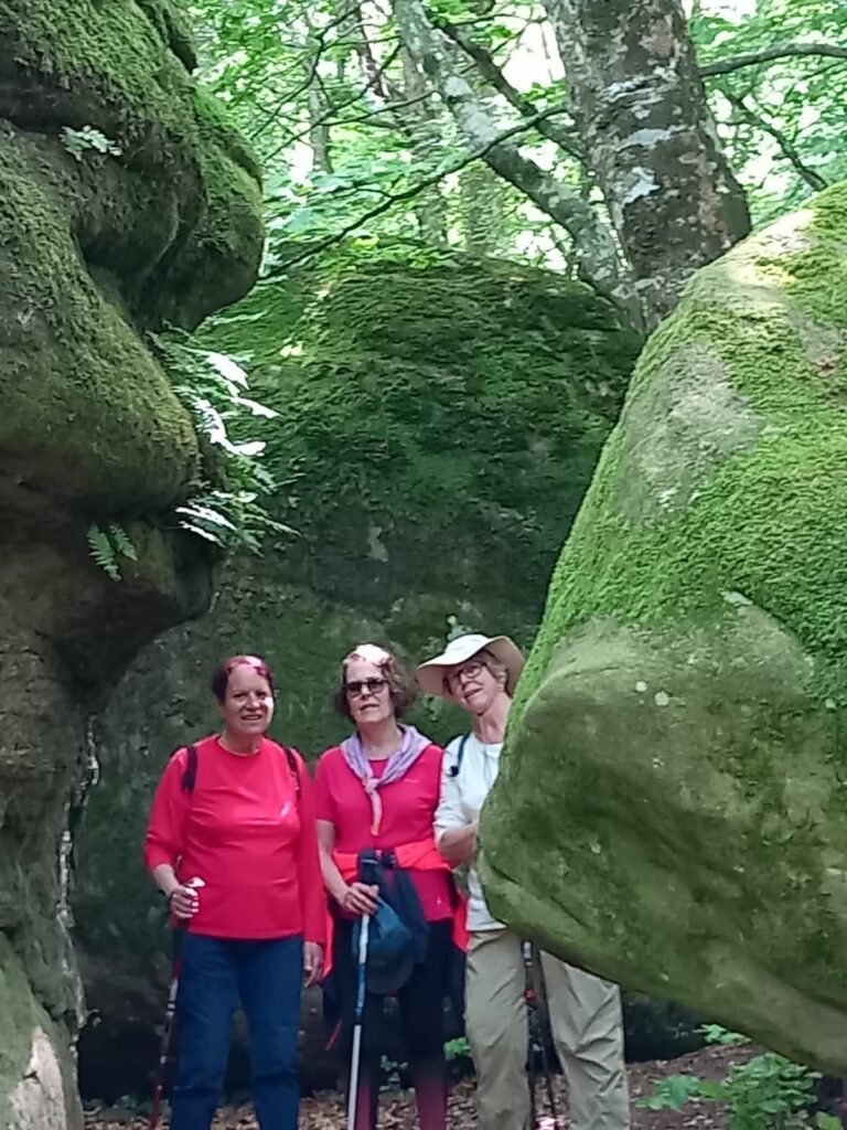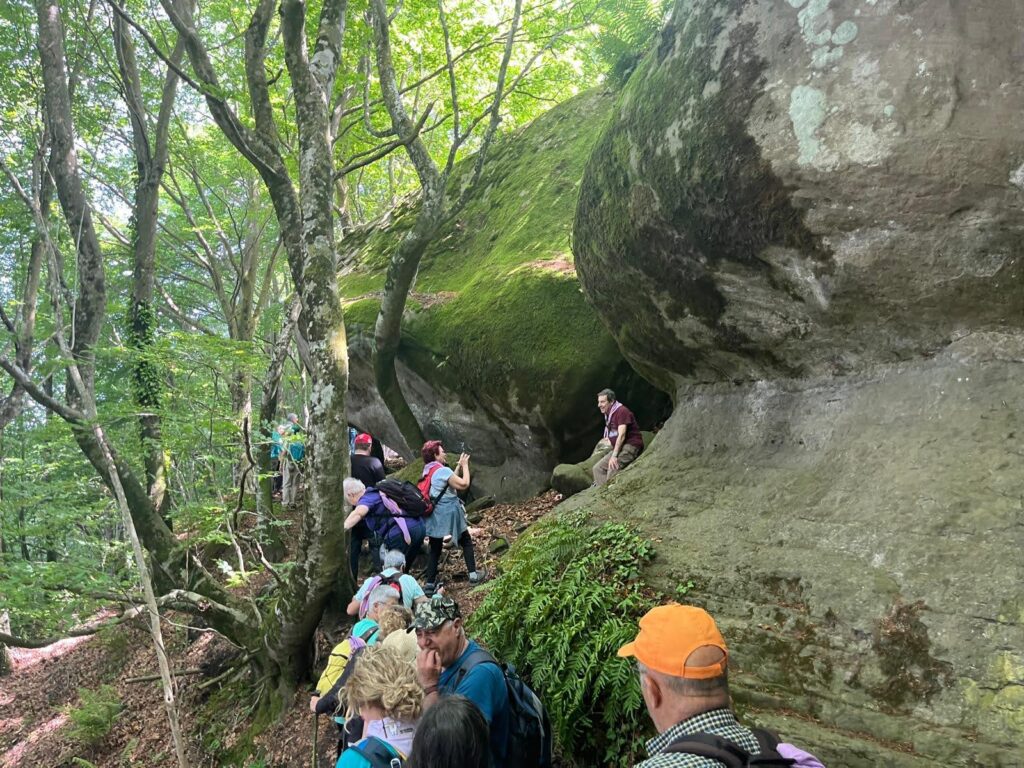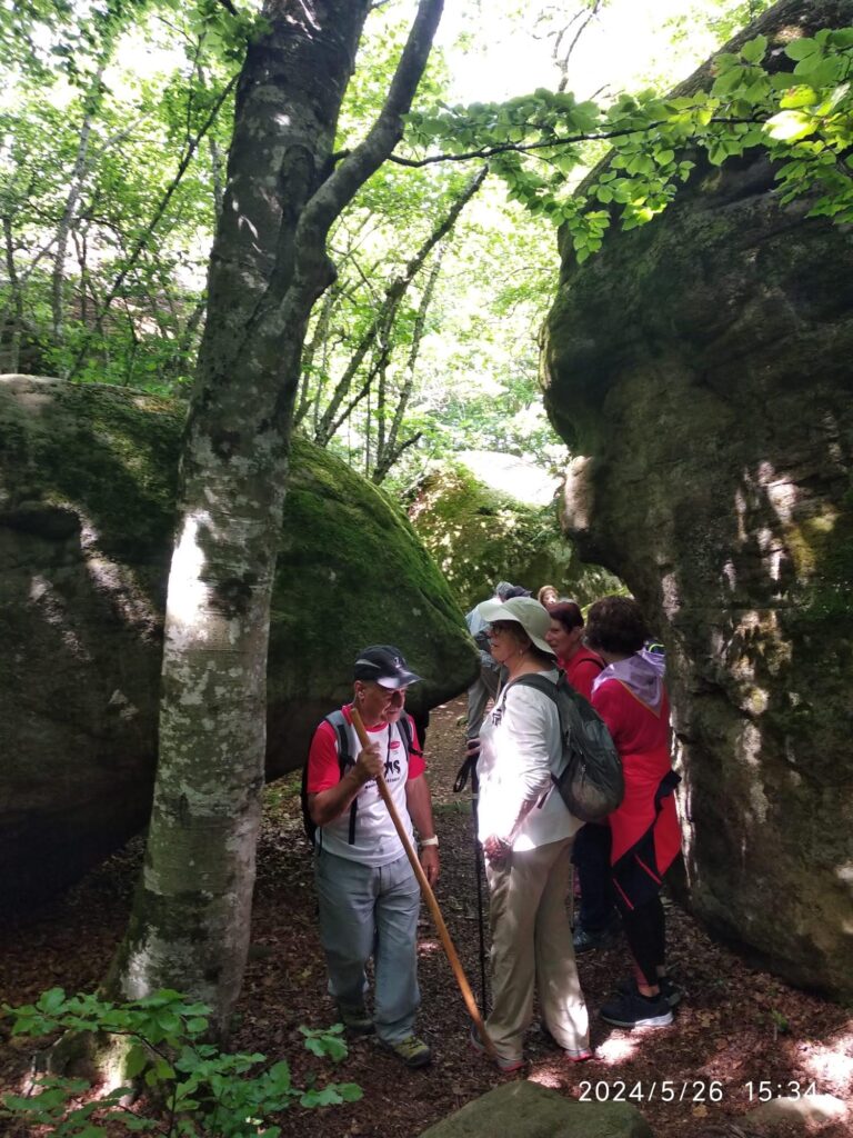 Després de dinar vam seguir la ruta i vam trobar la fageda dels Plans d’Armadans i les Roques Encantades, un conjunt de grans pedres amuntegades de formes capritxoses entre molses i falgueres. Vam continuar per la fageda i passant pel Mas d’Armadans, vam arribar al Coll de Condreu on s’acaba la ruta i ens esperava l’autocar.