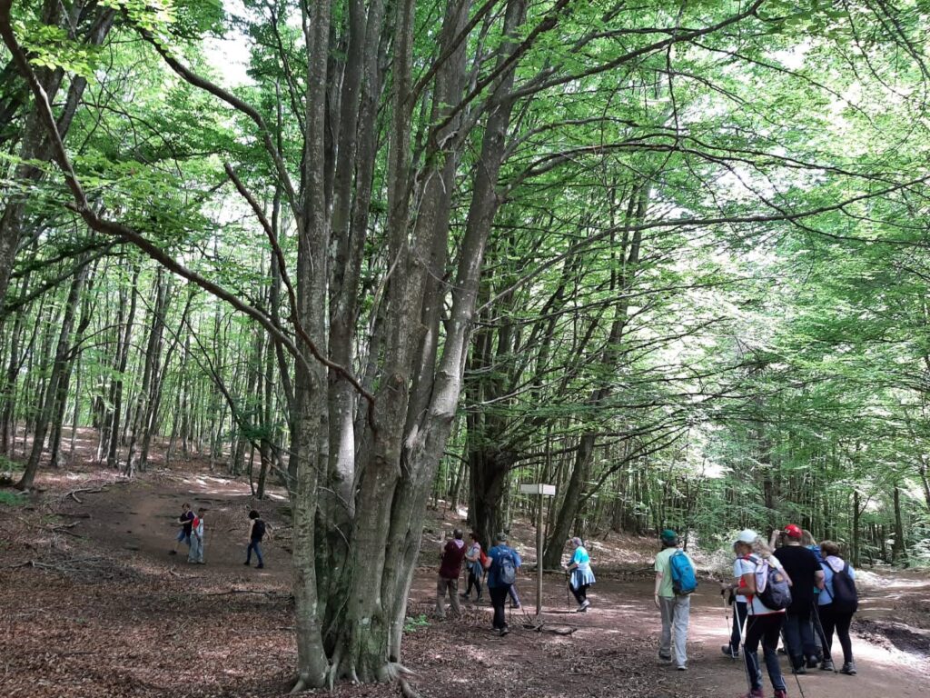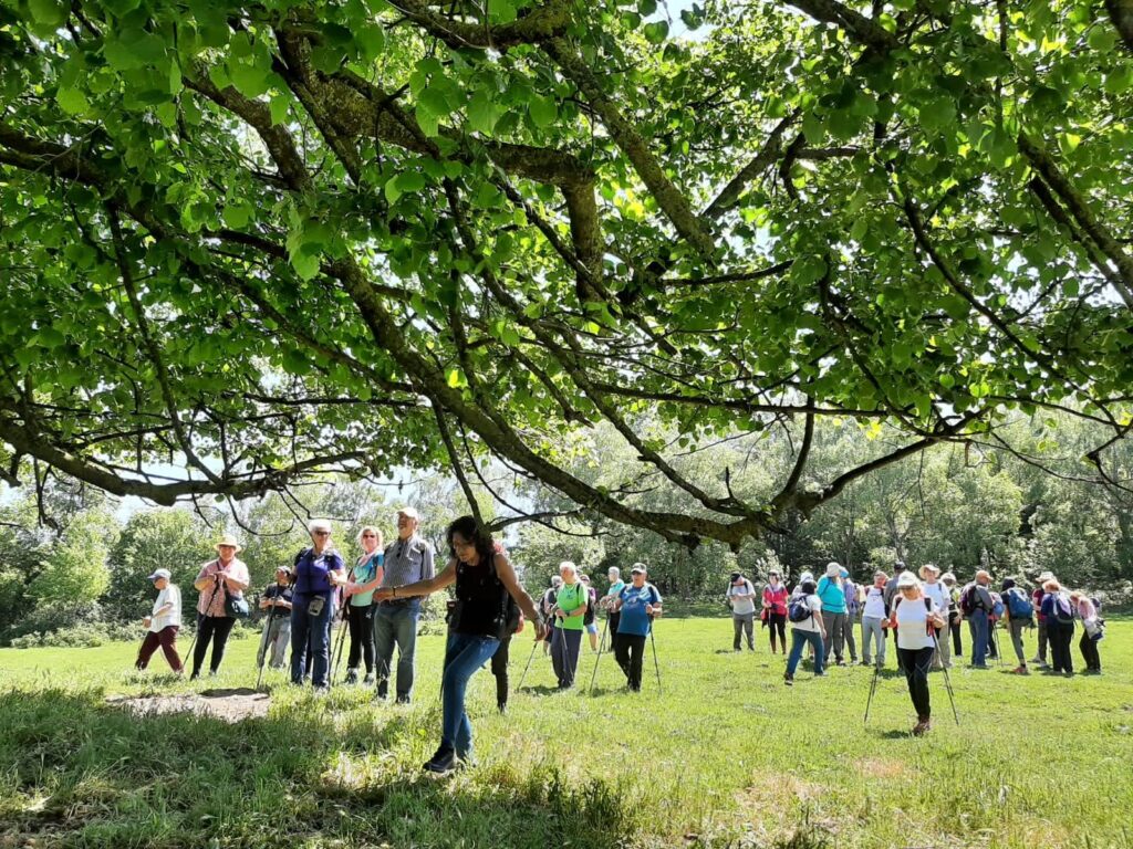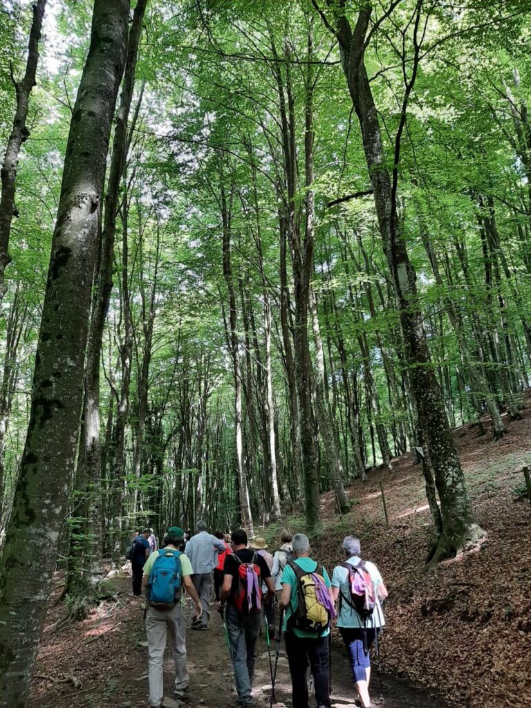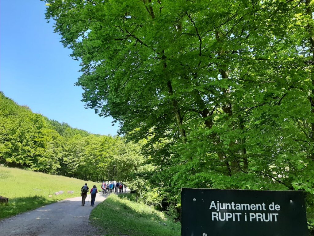 La majoria de caminadors van fer fer la ruta sencera d’uns 8-9 km sense dificultats. El bus ens va deixar al Pont del Papalló, i vam agafar el camí de Coma-Serra, envoltats d’avets i prats de pastura. Arribats al Prat de Roca-Roja vam tenir magnífiques vistes del Puigsacalm i d’Aiats. Després de travessar un bosc de bedolls vam arribar al Santuari de la Salut, al terme municipal de Sant Feliu de Pallerols, on vam dinar tots junts.