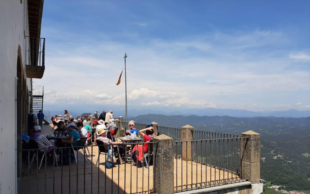 Pels que no feien l’excursió, hi va haver l’opció de quedar-se al Santuari de la Salut, on es va poder passejar i gaudir de les panoràmiques de la Vall d’en Bas. Després de dinar tots junts, el bus els va portar fins al Santuari de la Mare de Déu del Far, un magnífic mirador de Susqueda, el Collsacabra, la vall del riu Brugent, Amer i fins i tot la silueta de Montserrat i el Pirineu. Quan van estar ben amarats de tanta bellesa, l’autocar els va dur fins al Coll de Condreu on ens vam trobar tots junts per tornar a casa.