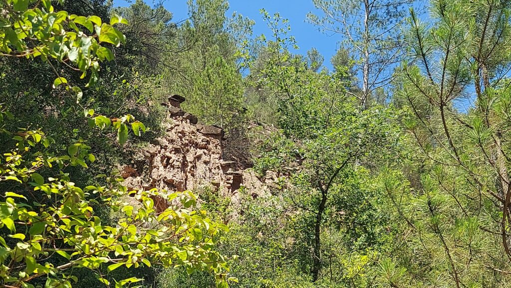 Tot aquest tram de camí es frondós i amb molta ombra. Hi ha unes pedres on vam poder seure per dinar i reposar.